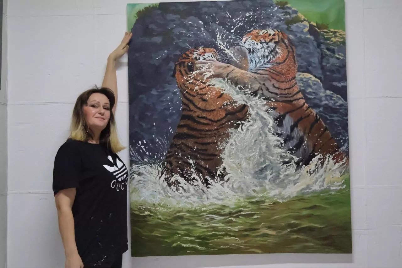 Clash of Tigers, Oil on canvas, 1200*1400 mm. SOLD