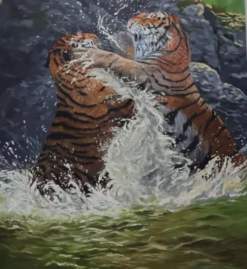 Clash of Tigers, Oil on canvas, 1200*1400 mm. SOLD